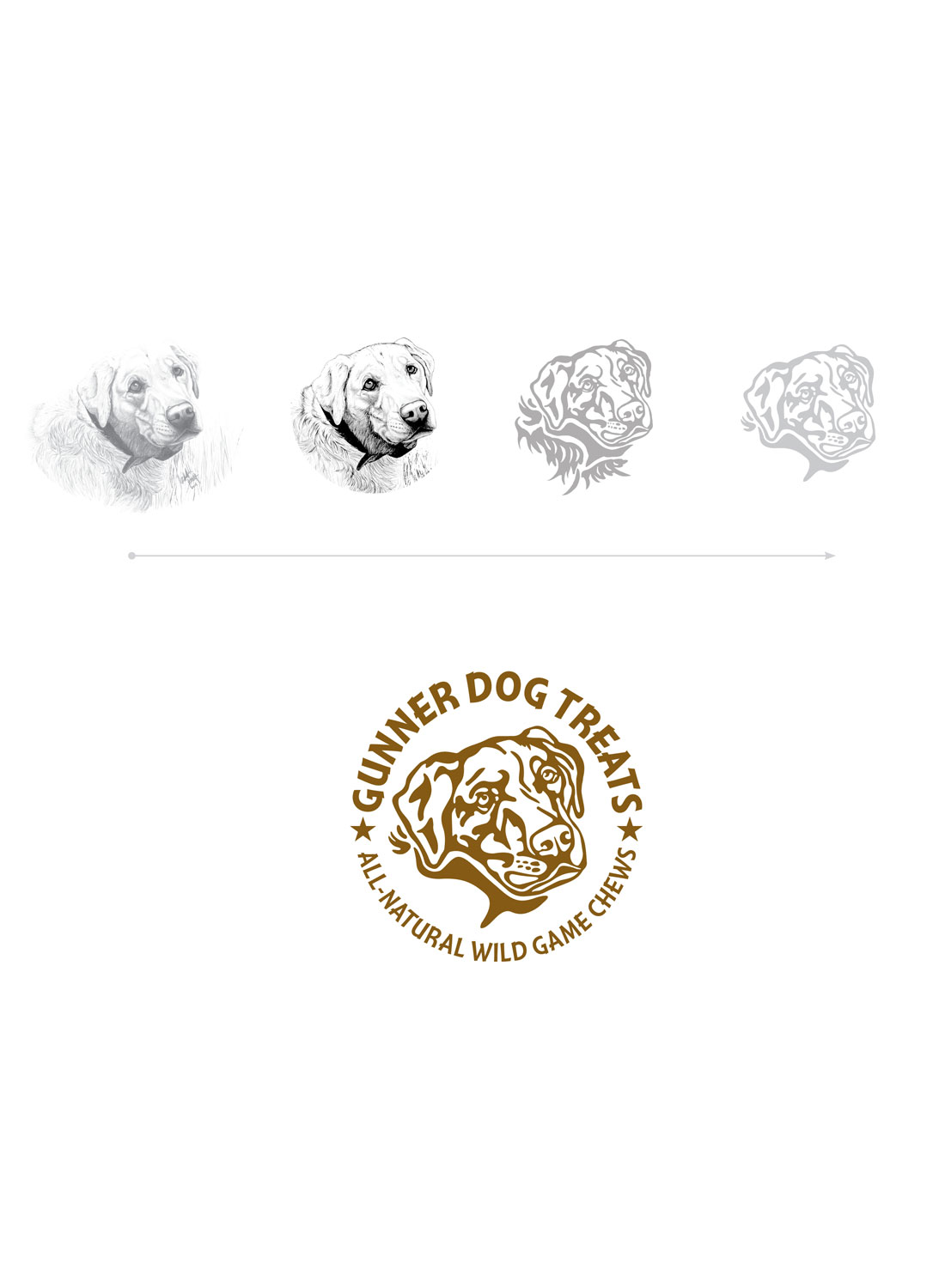 Gunner Dog Treats Identity, Illustration Request from the client was to take their pencil drawing and convert to a usable format for embroidery and screenprinting. The drawing was simplified through Photoshop then taken into Illustrator for the final refinement.